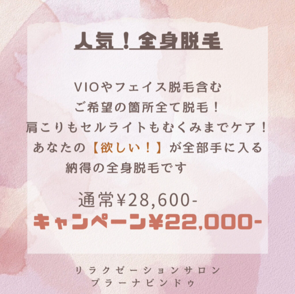 プラーナビンドゥの【美肌脱毛トリートメント】。