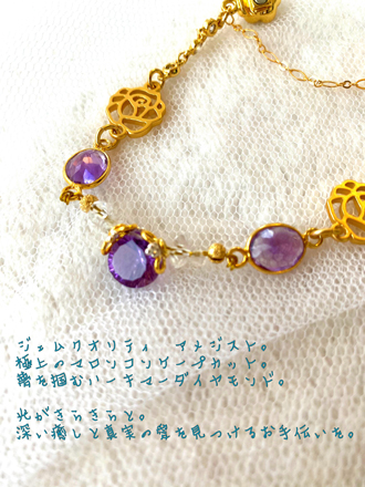 パワーストーン同士の組み合わせや配列を考慮して、クライアント様の望む未来が手に入りやすいようにストーンのパワーをアップさせたアクセサリーを制作販売しています。