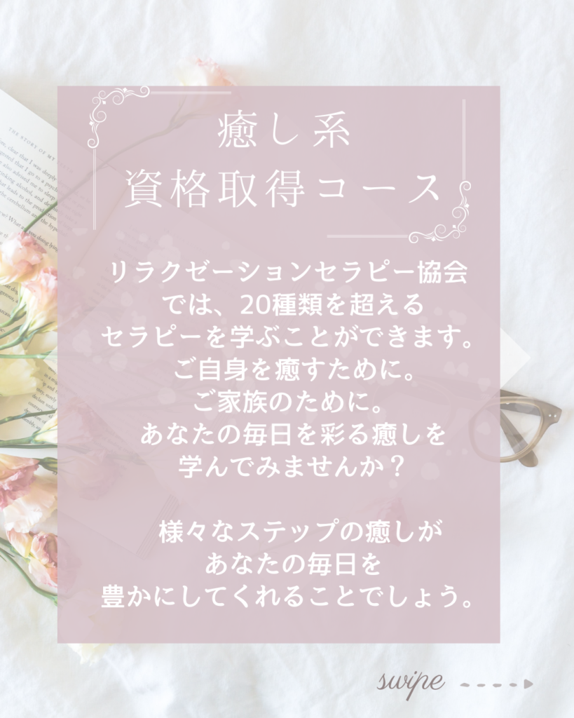 20種類以上の癒し系資格が取得出来るレッスンを開講中。